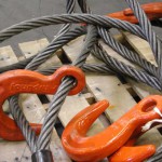 - A sling with wide opening foundry hooks is waiting to be shipped.