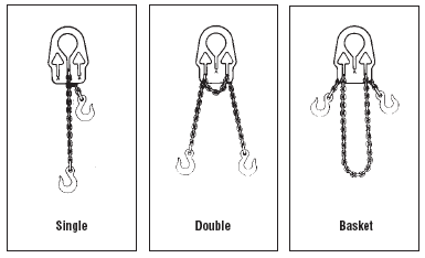 Model Number Rated Cap. (lbs.) Single at 90º Rated Cap. (lbs.) Double at 60º Chain Size (in.) A (in.) B (in.) C (in.) L (ft.) Weight (lbs.)