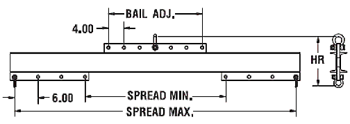 Model Number | Rated Capacity (tons) | Spread Max. (in.) | Spread Min. (in.) | Bail Adj. (in.) | HR (in.) | Bolt Type (tons) - Top | Bolt Type (tons) - Bottom | Weight (lbs.) | |||
