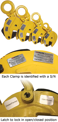 Pivot Eye Clamp Designed for lifting and turning in any direction. These clamps have a latch which locks in the open- and closed position. Minimum load is 10% of WLL. |