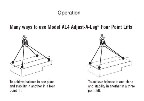 - Allows crane hook to be over the center of gravity in unbalanced or non-symmetrical four point lifts.