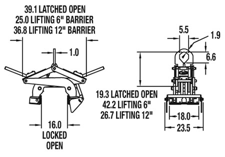 - Handles concrete barriers from 6” – 12” nominal width at the top of the barrier.