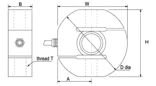 Capacity (Kg) | Part Number | A | W | H | B | ØD | Thread T |