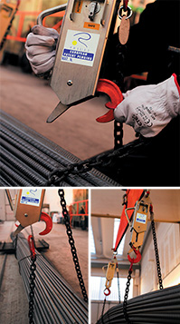 EASY HOOK is a device allowing the handling of any loads in a fully safe condition. The releasing device allows the operator to discharge the loads automatically, in a very fast and safe way.