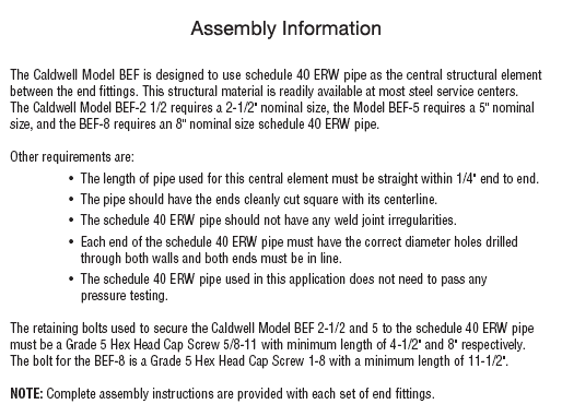 - Complies with ASME standards when assembled to specifications using schedule 40 pipe.