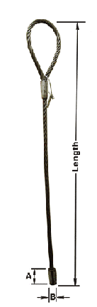 Model Number | Use With Model | Rated Capacity (tons) | Sling Dia. (in.) | Standard Length (ft.) | A (in.) | B (in.) | Weight (lbs.) |