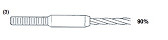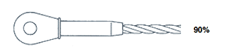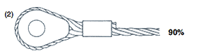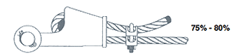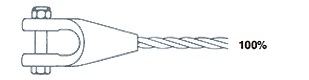 ALL other fittings are swaged or clamped onto the rope. The swaging or clamping process compresses the rope to varying degrees causing a slight loss of strength. Some publications refer to ‘100%’ efficiency with swaged sockets. Bear in mind, that most wire ropes have an actual breaking strength up to approximately 5%-15% HIGHER than the breaking strength listed in catalogue tables. In other words: a fitting having an efficiency rating of 90% may very well develop 100% of the rope’s CATALOGUE breaking strength because the rope’s ACTUAL breaking may very well be 5%–15% higher. |