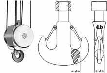 Les manilles Crosbyᴹᴰ à large corps existent dans des capacités allant de 75 tonnes à 1000 tonnes. | Les manilles standards ont un corps arrondi et ont des capacités nominales allant de 1/3 tonne à 400 tonnes. | Les crochets doivent avoir une épaisseur suffisante pour garantir un rapport D/d adéquat pour l’élingue, particulièrement lorsque l’élingue est employée dans un attelage en panier inversé, à savoir que le CORPS de l’élingue est placé dans les crochets et que les BOUCLES de l’élingue sont tournées vers le bas. |