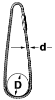 La BOUCLE d’un Œil et d’une élingue à Œil a presque le DOUBLE de la résistance de son corps. Pour cette raison, le rapport D/d de la BOUCLE est beaucoup moins important que lorsque l’élingue est employée dans un attelage en PANIER.