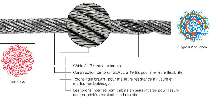 Câble d’acier à torons compactes 19×19 CS; résistant à la rotation