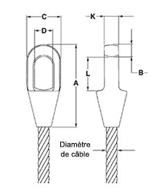 Taille câble pouce | A | B | C | D | K | L | LB chaque |