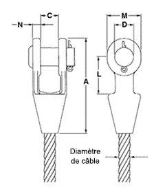 Taille câble pouce | A | C | D | L | M | N | LB chaque |