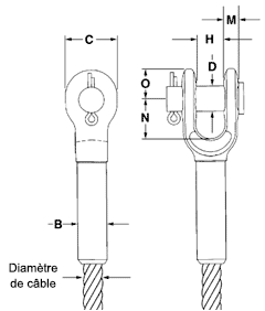 Les douilles peuvent être pressées sur la plupart des câbles métalliques assemblées, et elles ont une efficacité minimum de 95 % de la résistance d’un câble standard. Forgées dans une barre de qualité spéciale traitée par sphéroïdisation.