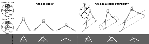 Capacité nominale – limites de charge utile à un CS de 5:1 Les valeurs indiquées sont en tonnes de 2 000 lb et sont basées sur un câble métallique à 6 brins à âme en acier |
