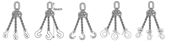 Grade 80 Chain Lifting Capacities (lbs) | ||||||
