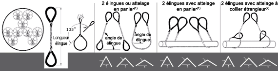 1 Les capacités nominales sont basées sur un rapport D/d supérieur à 5:1 pour le corps de l’élingue et de 1:1 pour l’Œil de l’élingue. |