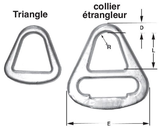 Fait d’aluminium d’aliage forgé. Ils pèsent environ 1/2 des accessoires d’acier. Pour utilisation avec des élingues simple pli seulement. Le coefficient de sécurité est de 5:1. |