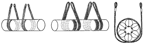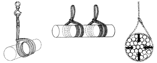 Une meilleure façon de faire le même levage. Utilisez un attelage à double collier étrangleur et, pour les longues charges, utilisez 2 élingues. Le double enveloppage compresse la charge sur les 4 côtés et permet un bien meilleur contrôle de la charge. |