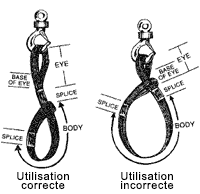 L’élingue devrait être de longueur suffisante pour s’assurer que la force d’étranglement s’applique sur le corps de l’élingue – jamais sur l’épissure de l’élingue, les gréements, les boucles ou à la base de la boucle ou du gréement de l’élingue. |