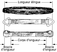 Longueur d’élingueToutes les élingues sont mesurées traction du bras à traction du bras lorsqu’elles reposent à plat et qu’elles sont tirées à la main. |