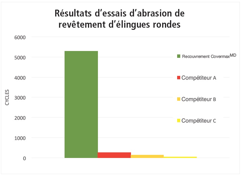 Les élingues rondes Twin-Pathᴹᴰ sont munies d’un revêtement Covermaxᴹᴰ. Le revêtement Covermaxᴹᴰ est composé d’un matériel de nylon industriel robuste à double épaisseur. Le revêtement extérieur est vert et le revêtement intérieur est rouge. Si les dommages à la couche verte permettent de voir du rouge, l’élingue doit être retournée à des fins d’inspection et de réparation en usine. Ce revêtement a été testé pour offrir la meilleure protection contre les rayons ultraviolets (UV) et l’abrasion de toute élingue de levage synthétique offerte sur le marché.