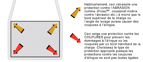 Protection contre l’abrasion et les coupuresToutes les élingues synthétiques doivent être protégées des coupures accidentelles par des bords tranchants de la charge ou les points d’accrochage. Il y a deux types de protection très différentes disponibles: |
