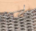 ← Return to Testing & Services Damaged Wire Mesh Slings Repair of a Gripper wire mesh sling Frayed mesh Broken individual mesh links Bent over a sharp corner at an angle Bent fitting