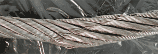 Actual example of a rotation resistant wire rope which was forced to run in too tight sheave grooves. Result is so called ‘core popping’. |