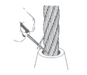 FittingsInspect the fittings on your rope and look for wire breaks at the shank of sockets or sleeves. Inspect the fittings for wear, distortion, cracks, and corrosion. Follow the inspection criteria of the fitting manufacturer and DO NOT ATTEMPT TO REPAIR ANY WIRE ROPE FITTING YOURSELF! Watch for missing hook latches and install new ones if necessary. If latches wear out too rapidly, ask us for special Heavy Duty latches which may fit your hook. Some hook manufacturers offer self-locking and special Gate Latch hooks. |