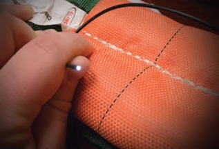 Twin-Path® Slings type TPCX are optionally available with a Fiber Optic Inspection system. The condition of the internal core yarn can be inspected just by checking the continuity of the fiber optic cable. If heat, chemicals, crushing or cutting of the core yarn has occurred any possible resulting damage to the fiber optic cable will destroy its ability to transmit light from one end to the other giving the inspector a reason to remove the sling from service and send it in for repair evaluation. The fiber optic cable will conduct light using natural, overhead or flashlight sources. The inspector simply taps a finger against one end and watches the other end for blinking.