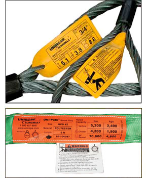 • Uni-Web® Edge Tech Slings are tagged with a black/orange letter/tyvac tag combination.