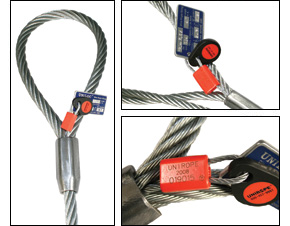 Unirope went through the expense to develop a sling tagging system which lasts. The aluminum tags are made from super sturdy 1/8" thick aluminum plate; in the case of our chain tags two of them are riveted together to form a 1/4" thick sturdy tag with a pull-off strength exceeding 2,000 lbs. All information is deep etched and/or deep impression stamped into the tag. For most chain- and wire rope sizes the capacity information is already etched in with large legible numbers so users can actually read the tag from about 6 ft away. That in itself is a huge step forward in plant and construction site safety.