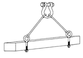 3) | NEVER, and that means NEVER, rig a sling through eye bolts. You severely increase the stress on the eye bolt and the bolt can break. | With Regular (non Shoulder) eye bolts, use a spreader bar to keep the lift angle at 90° to the horizontal. |