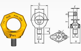 PSA-Starpoint PSA-VRS-UNCLifting point to be used as an anchor point for personal protective equipment (acc. to DIN EN 795), certified by the German BG BAU ( Employer’s insurance association of the building industry). Star-shaped, distinctive variety to DIN 580 eye bolt. Colour: remarkable yellow powder coating. Marking: acc. to DIN EN 365 including statement for the number of load bearing persons (1 or 2 persons). The VRS-PSA is not supposed to be used permanently outdoor. For this application we recommend the PSA-INOX-Star. Forged material 1.6541, high-tensile quenched and tempered, 100% electromagnetic crack inspected (according to En 1677-1). Safety factor: 4 Bolt in material quality should be at least 1.0037 (ST37). In light metal, non-ferrous heavy metal, grey cast iron, concrete, wood, and stone, the determination of the thread must be chosen in such a way that the thread working load complies with the base material (please observe the data of the plug manufacturer). |
