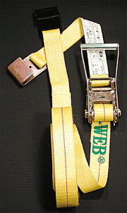 Complete with Ratchet and End Fittings as below. Standard Length is 20 ft (2 ft Tail, 18 ft Strap) Rated Capacity: 3,300 lbs All Tie Down systems come with a sturdy vinyl Capacity Tag stating |