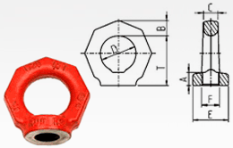 Eye Nut RMWith the following characteristics, distinctive in comparison to the conventional DIN-eye nuts. An octagonal shape symbolizing quality class 8. Coloured red, the identification colour of quality class 8. Identification: clear WLL indication for the most unfavourable load direction F2 (not permissible for DIN 581). Swiveling movements must be avoided during transportation. It does not automatically adjust to the direction of pull, hence not permitted in the mining industry. |