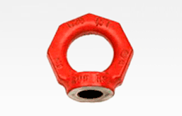 Eye Nut RM-UNCWith the following characteristics, distinctive in comparison to the conventional DIN-eye nuts. An octagonal shape symbolizing quality class 8. Coloured red, the identification colour of quality class 8. Identification: clear WLL indication for the most unfavourable load direction F2 (not permissible for DIN 581). Swiveling movements must be avoided during transportation. It does not automatically adjust to the direction of pull, hence not permitted in the mining industry. |