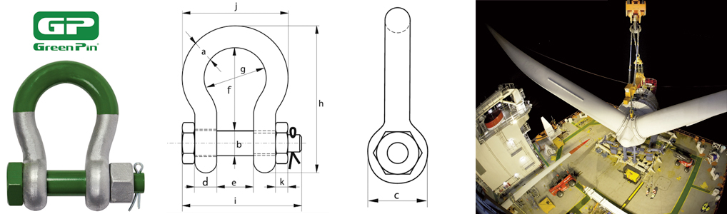 Dimensions (inch) for Green Pin® ALLOY Bolt Type Anchor Shackles Type 5263 |
