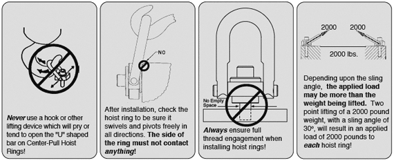- Select the proper Hoist Ring for the job. Do not attempt to apply more than the rated load capacity. The load capacity is stamped on the Hoist Ring.
