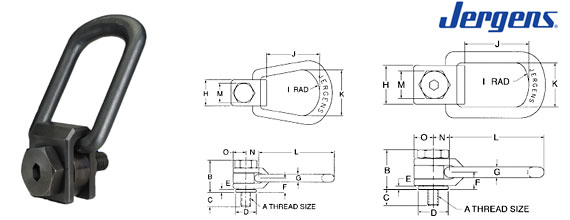 The Jergens SP2000 Side-Pull Style Hoist Ring is ideal for flipping fixtures, dies and molds. It swivels 360° and pivots around the center bolt providing ring with greater clearances in side lifting applications and when liftingrotating objects. The hoist ring is low profile and has a unique bolt retention design. The oversized forged ring, and single piece forging, easily adapts to larger hoist hooks. Its relatively light weight makes it easier to handle than similar hoist rings and the installation is conveniently done with external wrenching (47531, 47532, 47581, 47582) or internal/external wrenching (all other sizes). All parts are made in the U.S.A.