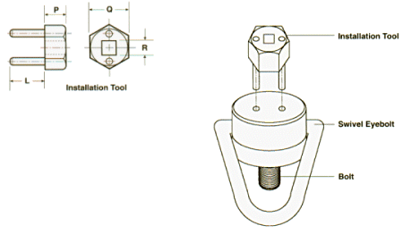 Installation Tool Part Number | Pin Length L | Head Thickness P | Hex Size Q | Square Drive R |