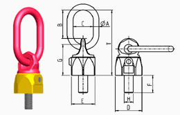 Lifting Point-Vario VWBG-V -UNCSuitable for all loads which swivel and tilt. Can be loaded in all directions with a 4:1 design factor. Swiveling under full load is permissible provided the inclination angle is not perpendicular to the screw-in direction. Not suitable for permanent swiveling under full load. |