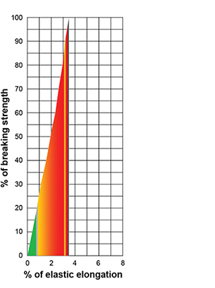Elastic ElongationThe coloured area under the curve represents the rope’s energy absorption capability.