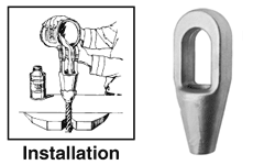 Note: Socket strength is equal to class 6x19/6x37 IWRC EEIPS wire rope. For installation on Python® and Bridge Strand wire rope call for details. |