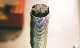 After blade cutting, mount upright. Do not use the cutting nozzle of your torch but attach a small tip. | Carefully melt and fuse together all individual wires. |