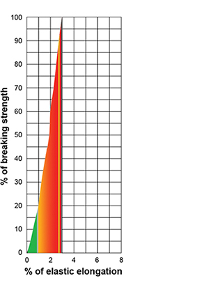 Elastic ElongationThe coloured area under the curve represents the rope’s energy absorption capability.