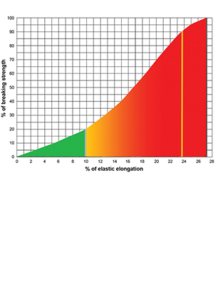 Elastic ElongationThe coloured area under the curve represents the rope’s energy absorption capability.