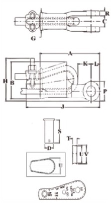 S-421T WEDGE SOCKETS (Assembly includes Socket, Wedge, Pin and Wire Rope Clip) | |||||||