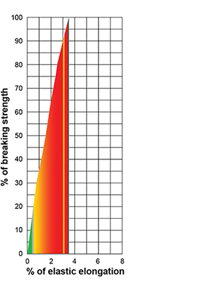 Elastic ElongationThe coloured area under the curve represents the rope’s energy absorption capability.
