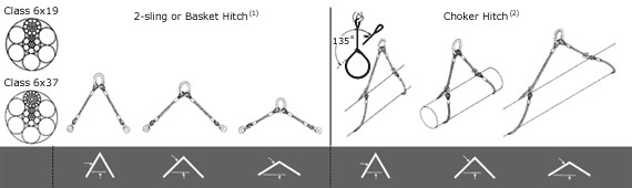 Rated Capacity — Working Load Limit (WLL) at DF 5:1 Values shown are in tons of 2,000 lbs and are based on 6-strand wire rope with a Steel Core (IWRC) |